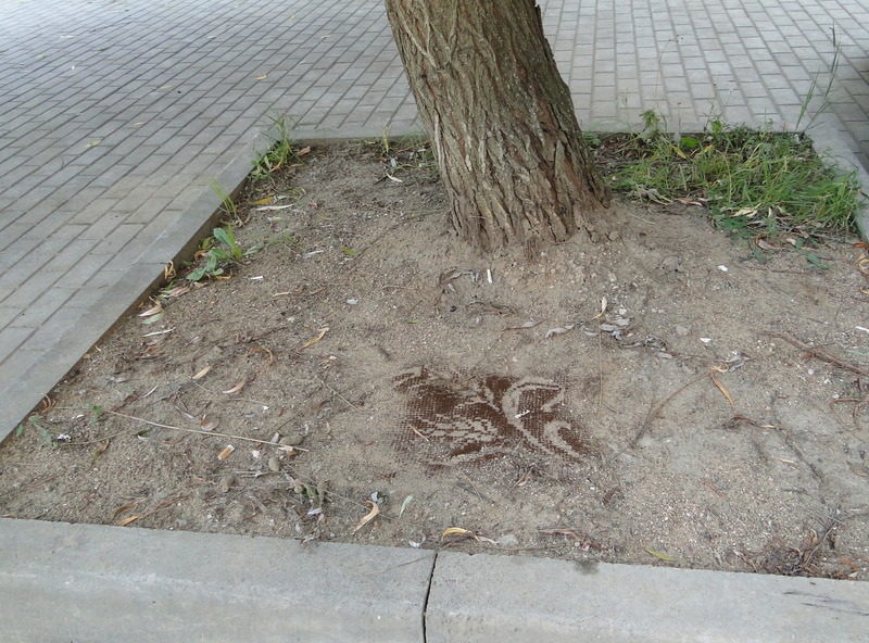 The friends drink coffee together, and for the duration of the coffee break, the work exists in situ. Then it is photographed and swept away.